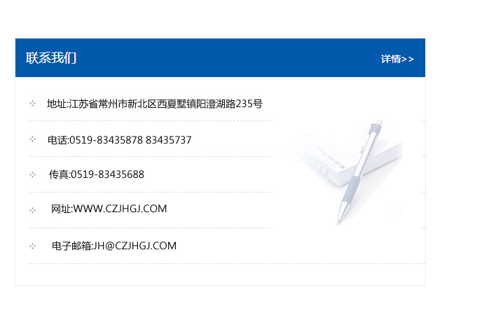 地址:常州市新北區友邦商務大廈1幢16、17層  電話:0519-85101652  傳真:0519-85112595  郵編:213022  網址:www.cz-jiayue_cn.emba-tour.com  郵箱:xiajifengaa@163.com